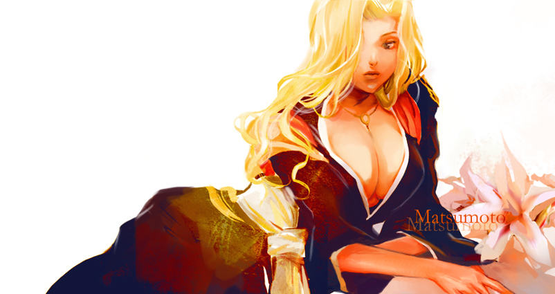 tanaka marusu, yakumo yukari, touhou, 1girl, arm garter, bent over, blonde hair, cloud, female focus, gap (touhou), hat, light smile, long hair, looking at viewer, sky, slit pupils, solo, very long hair, yellow eyes