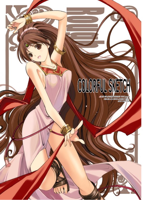 kitamiya genbu, artoria pendragon (fate), saber (fate), fate/stay night, fate (series), 00s, 1girl, ahoge, blonde hair, cleavage cutout, clothing cutout, female focus, green eyes, hair down, hand on own forehead, open mouth, pantyhose, shoulder pads, simple background, sitting, solo, white background, white pantyhose