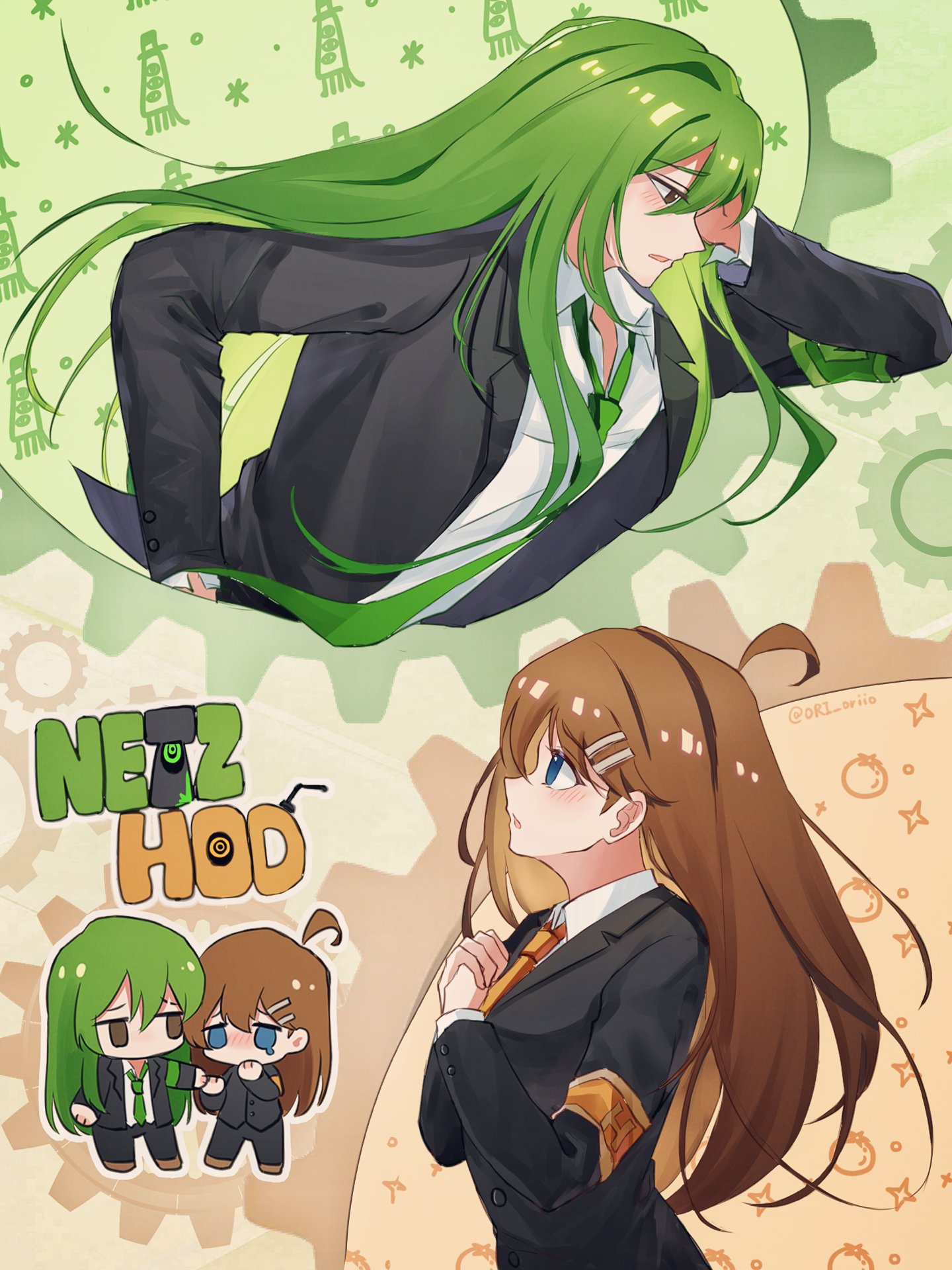 nitijoy2, tokitou muichirou, kimetsu no yaiba, absurdres, highres, 1boy, animal ears, aqua eyes, aqua hair, belt, black hair, black jacket, border, cat ears, cat tail, chibi, chibi inset, demon slayer uniform, gold buttons, hair between eyes, jacket, kemonomimi mode, long hair, male focus, parted lips, sidelocks, solo, tail, upper body, white belt, white border