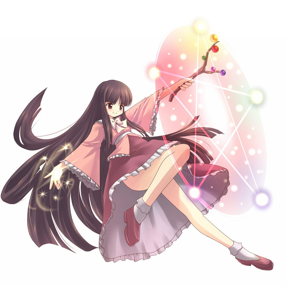 1girlblunt bangsbranchbrown eyesbrown hairfemale focusjapanese clothesjeweled branch of hourailegslong hairmagicmagic circlepentagramsolovery long hair