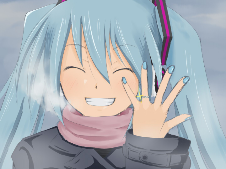 kuko, uko (artist), yufushi, original, artist collaboration, painting (medium), traditional media, watercolor (medium), 1girl, bird, bird on hand, blue eyes, female focus, flamingo, food, ice cream, long hair, pocky, purple hair, solo, squid, surreal, thighhighs, waitress, what
