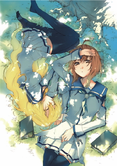 10s2girlsbookdappled sunlightmultiple girlsschool uniformserafukushadesunlightthighhighszettai ryouiki