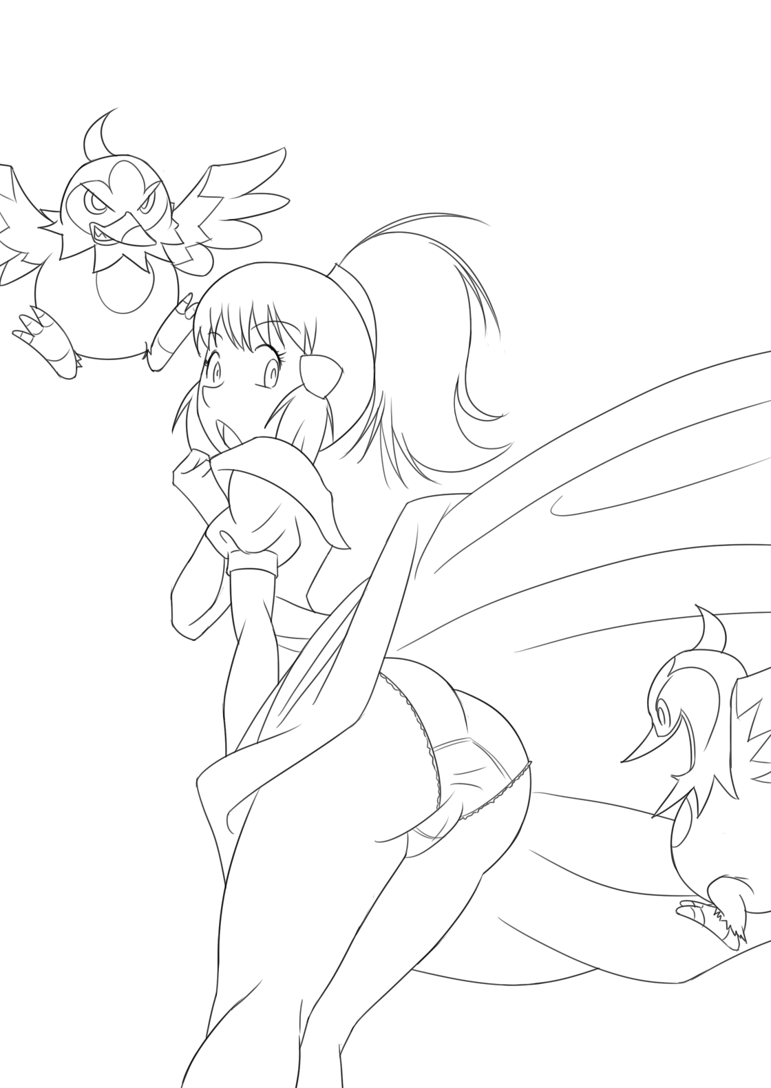 ambiguous genderassavianbirddressfemaleFlag for Deletionhumanlong hairlooking backpantyshotpokemonponytailskirt liftsmilesurprisedtied hair