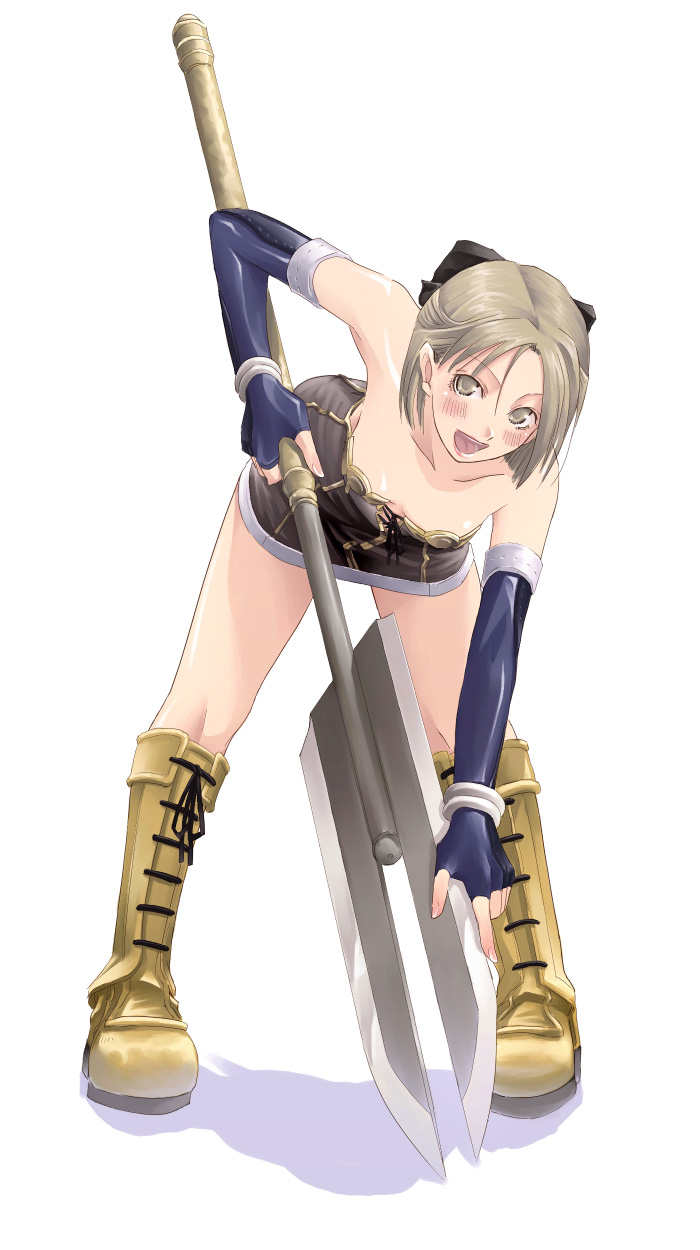 studio inopy, original, 1girl, blonde hair, blush, brown eyes, brown gloves, cowboy shot, female focus, gloves, happy, long sleeves, looking at viewer, scarf, short hair, simple background, smile, solo, standing, twintails, white background, white scarf