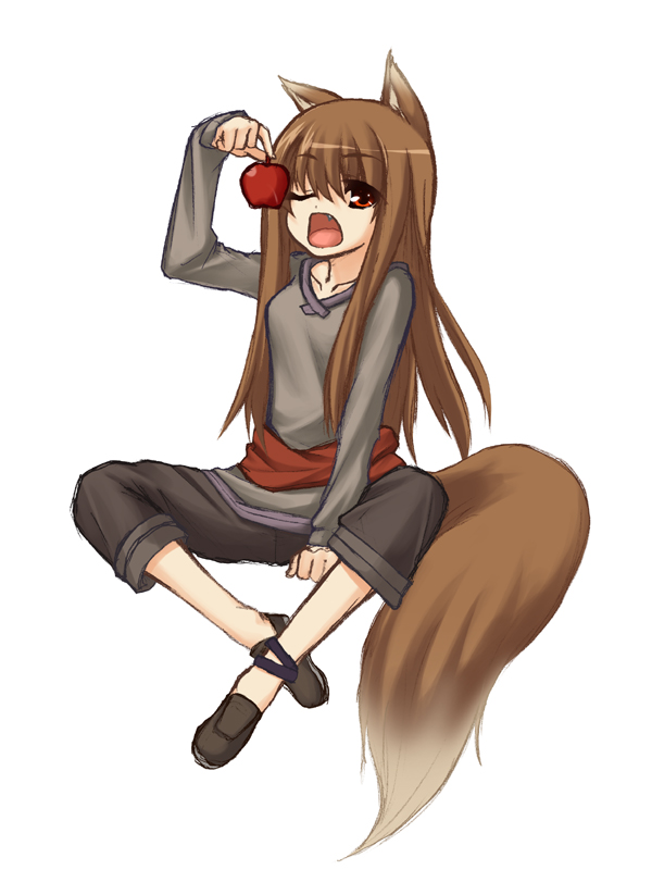 00s1girlanimal earsapplefangfemale focusfoodfruitholdingholding foodholding fruitno socksone eye closedsolotailwinkwolf earswolf tail