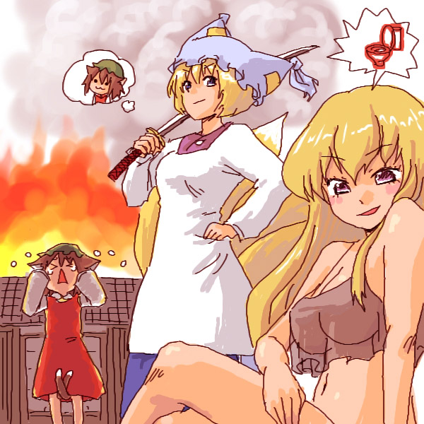 1boy3girlsanimal earsanimal hatblonde hairblue eyesblushbrown haircat earscat girlcat tailclosed eyescrossed legsfemale focusfirefox tailhatkatanalong hairlong sleevesmob capmultiple girlsparodypurple eyesshort hairsittingswordtailtasseltearsweaponwide sleeves