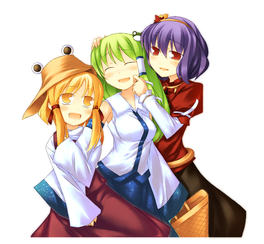 nancykittyu, alicia combatir, colette brunel, fujibayashi sheena, martel (tales), presea combatir, raine sage, tales of (series), tales of symphonia, absurdres, highres, alternate hair ornament, ankle boots, apron, back bow, black dress, black hair, black leggings, black pants, black trim, blonde hair, blue eyes, blue ribbon, blue trim, blunt bangs, boots, bow, brown eyes, chest jewel, chibi, cleavage cutout, clothing cutout, coat, detached sleeves, dress, elbow gloves, false smile, fingerless gloves, from side, gloves, gold choker, green dress, green eyes, green hair, grey gloves, hair intakes, hair ornament, high ponytail, interlocked fingers, jacket, japanese clothes, kimono, leggings, light blush, long hair, looking afar, looking at viewer, looking up, maid apron, motoyui, multiple girls, multiple views, nervous smile, orange coat, pants, pink bow, pink hair, pink ribbon, pink sash, ponytail, purple kimono, purple sleeves, red ribbon, ribbon, sash, shirt, sidelocks, sleeve cuffs, sleeveless, sleeveless dress, smile, spiked hair, swept bangs, twintails, white background, white boots, white dress, white hair, white jacket, white shirt