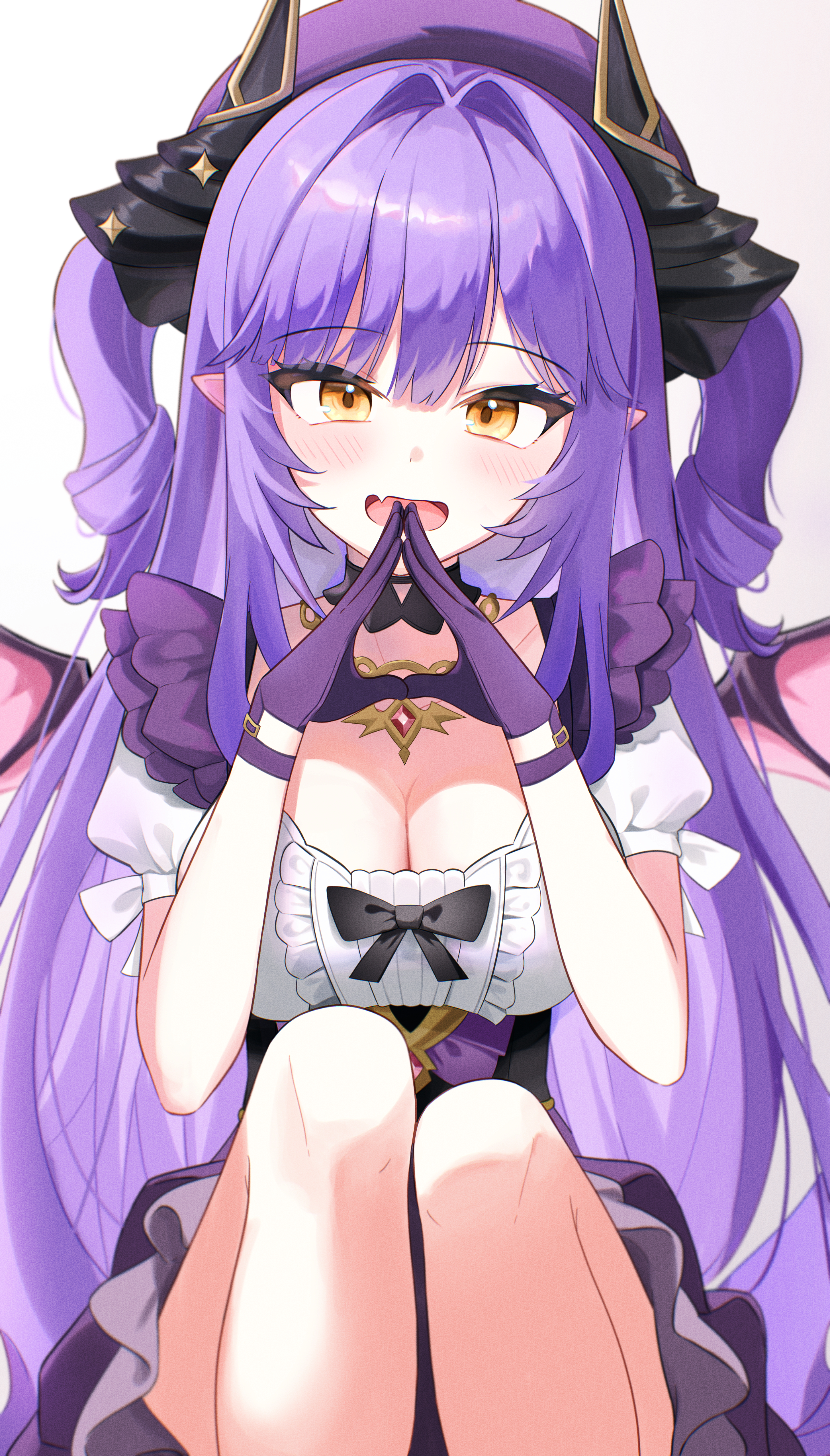 kannon ouji, anna miller, original, 1girl, blush, breasts, female focus, high ponytail, large breasts, long hair, looking at viewer, open mouth, ponytail, solo, waitress