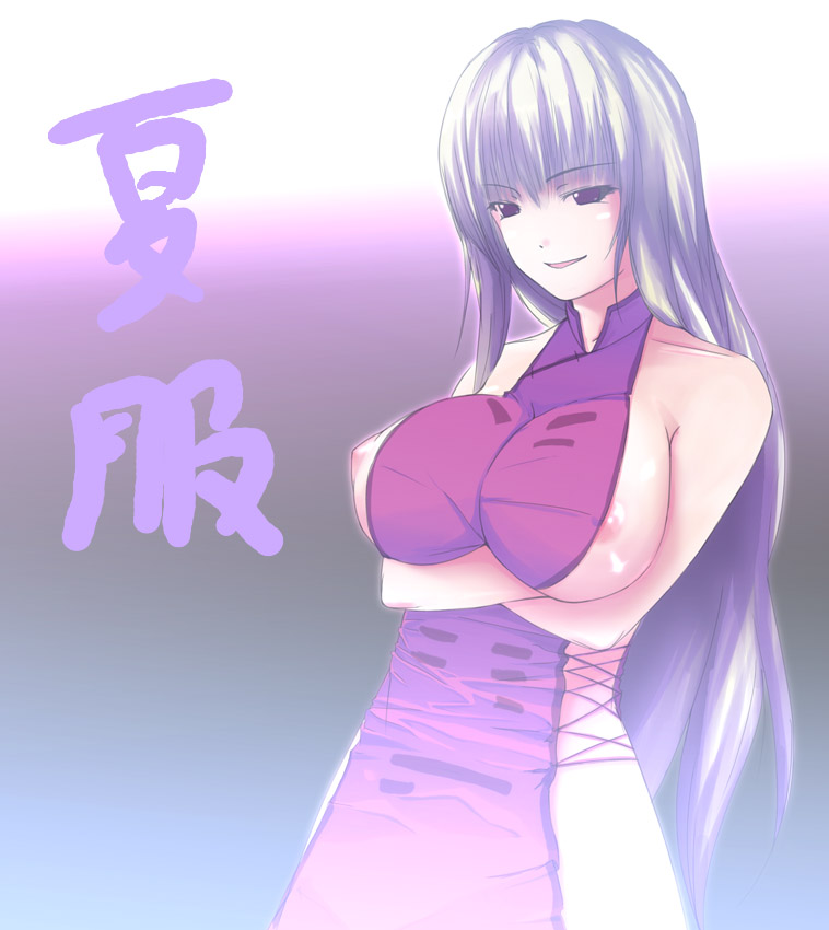 indinu, francoise (eurasia), original, highres, 1girl, apron, borrowed character, breasts, dress, feet out of frame, frilled apron, frills, from below, greyscale, hand up, hat, huge breasts, juliet sleeves, long dress, long hair, long sleeves, maid, maid apron, mob cap, monochrome, parted lips, puffy sleeves, simple background, solo, standing, very long hair, wavy hair, white background