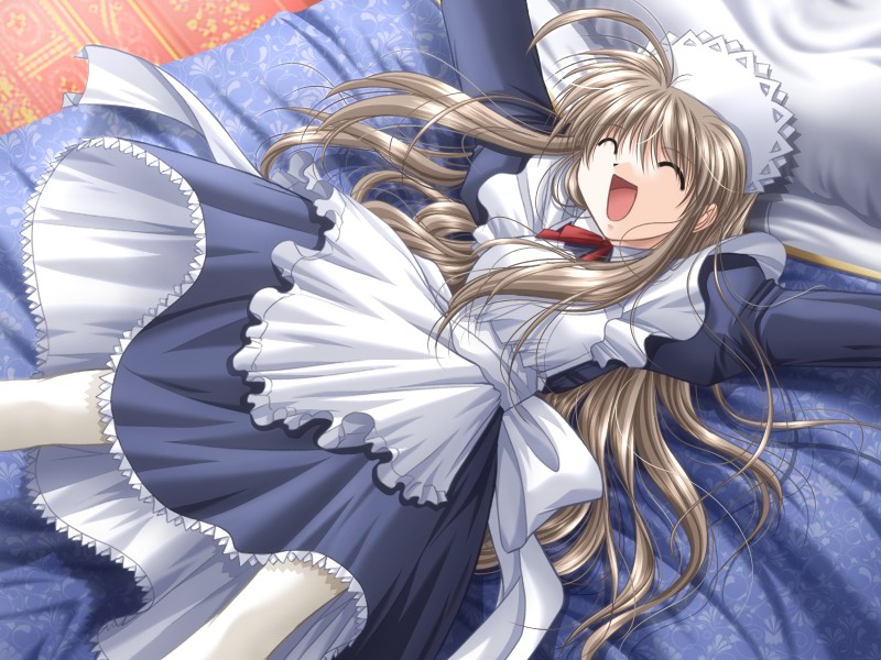 dizzy (guilty gear), testament (guilty gear), arc system works, guilty gear, 1boy, 1girl, androgynous, bare shoulders, blue eyes, blue hair, brown hair, closed eyes, collarbone, dress, hair ribbon, hetero, hug, japanese clothes, long hair, on person, ribbon, sash, sitting, wings