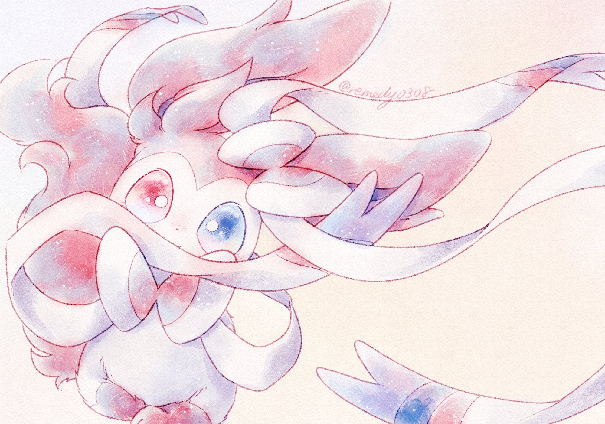alternate eye coloranimal focusanimal handsblue eyesfull bodygen 6 pokemonheterochromialooking at viewerno humanspink eyespink furpokemon (creature)pokemon focussimple backgroundsittingsolotwo-tone furwhite furyellow background
