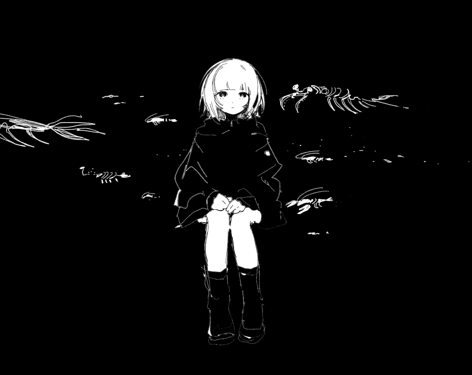 ayakaze ryuushou, mizusawa mao, kimi kiss, blouse, braid, greyscale, kneehighs, long hair, monochrome, panties, pantyshot, pleated skirt, ribbon, school uniform, serafuku, shirt, sitting, sketch, skirt, socks, solo, twin braids, underwear
