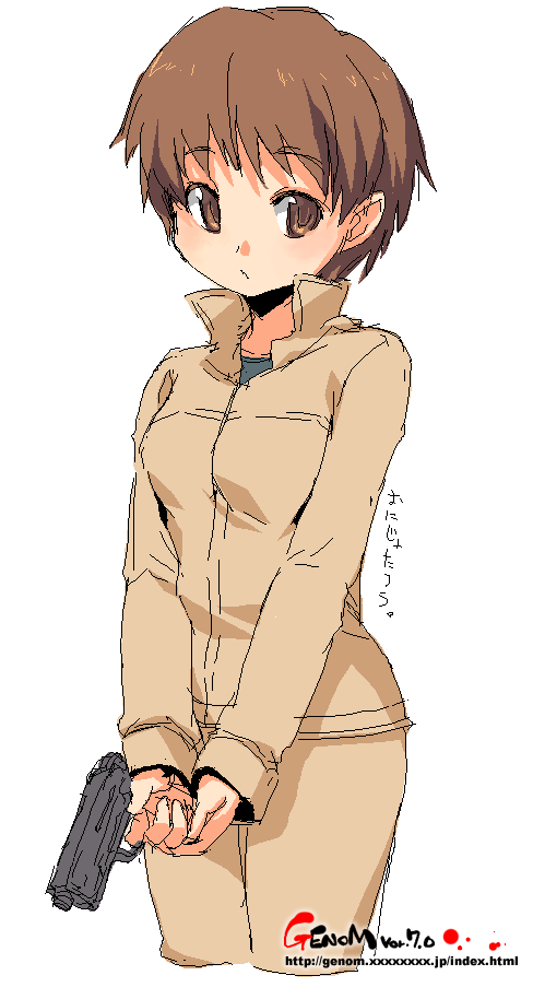 kojima tsuma, hoshino yuumi, kimi kiss, blush, brown eyes, brown hair, hair ornament, hairpin, long hair, nude, shadow, simple background, solo
