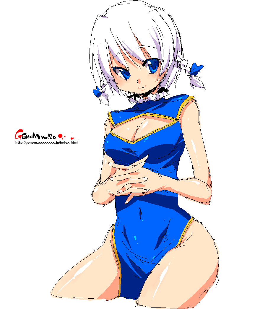 1girlblue eyesbraidbreastschina dresschinese clothescleavagedressfemale focuship focuslarge breastsoekakishort hairsolowhite hairwide hips