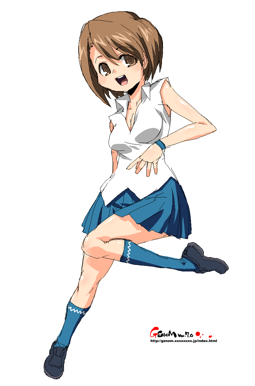 1girlbreastsbrown eyesbrown haircleavagefemale focusmedium breastsoekakishort hairskirtsockssolo