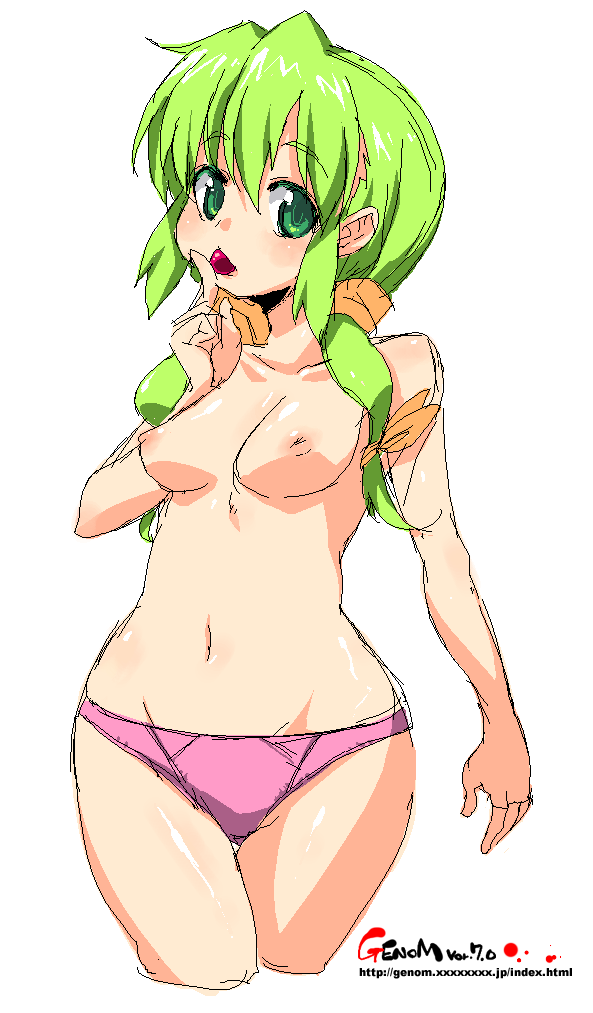 1girlbreastscandyfemale focusfoodgreen eyesgreen hairhip focusmatching hair/eyesmedium breastsnavelnipplesoekakipantiespink pantiessolotopless femaleunderwearwide hips