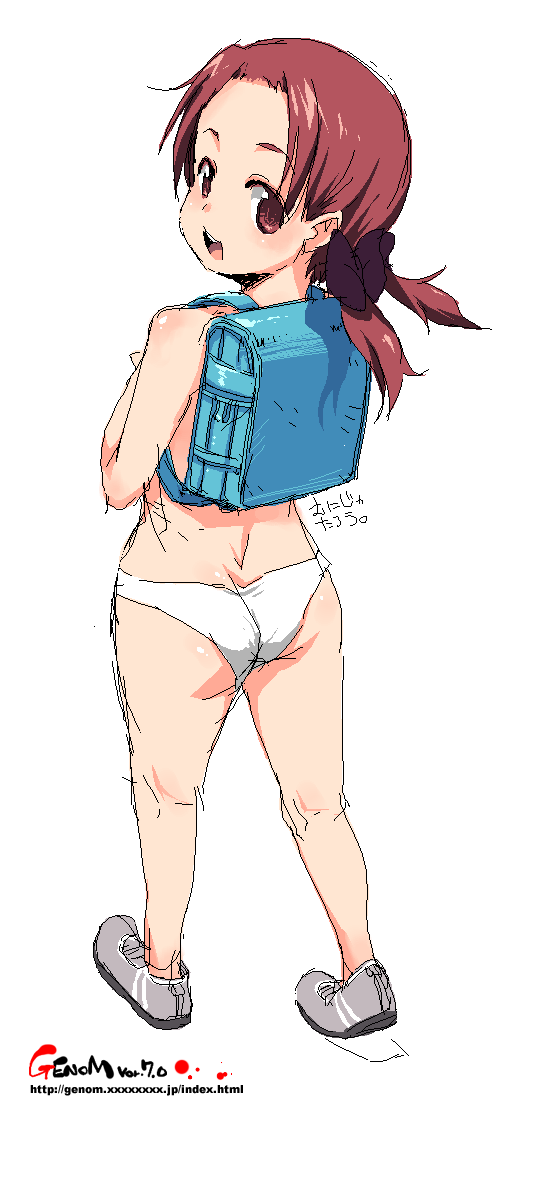 1girlbackpackbagbottomlessbowbrown eyesbrown hairfemale focushair bowjaggy lineslolilooking backno socksoekakipantiesrandoseruschool uniformshoessneakerssolotopless femaleunderwearunderwear onlywatermarkweb addresswhite panties