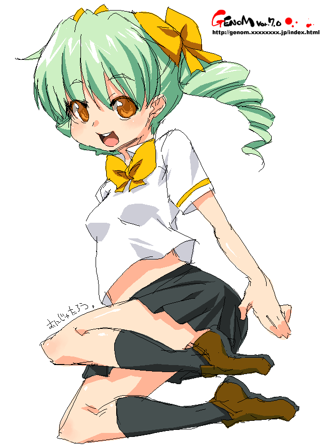 kimiyoshi natsumi, higurashi no naku koro ni, lowres, 00s, blood, donut hair bun, hair bun, school uniform, serafuku, sketch, solo