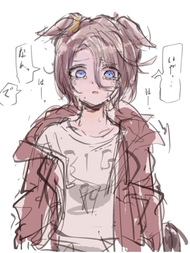 1girlanimal earsblue eyesbrown hairbrown jacketclothes writingears downhair between eyeshorse earshorse girlhorse tailjacketlooking at vieweroff shoulderopen clothesopen jacketparted lipsshirtsimple backgroundsketchsolotailtearsupper bodywhite backgroundwhite shirt