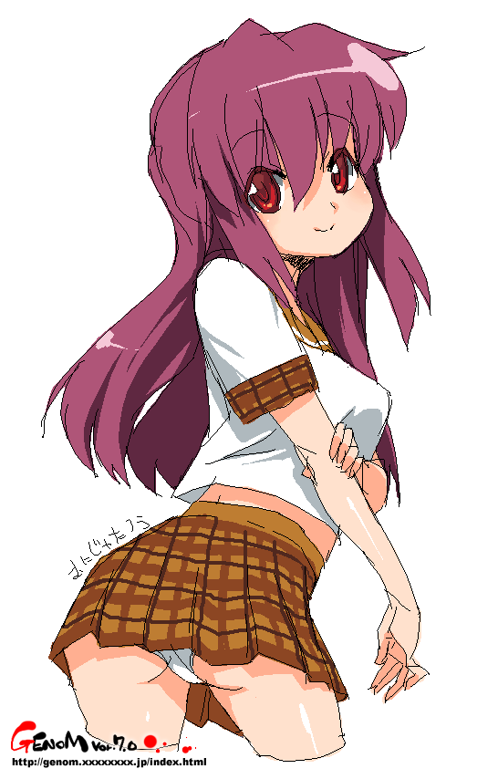 assholding own armminiskirtoekakipantiespantyshotpink hairplaid clothesplaid skirtred eyessimple backgroundskirtsmilesolounderwearwatermarkweb addresswhite background