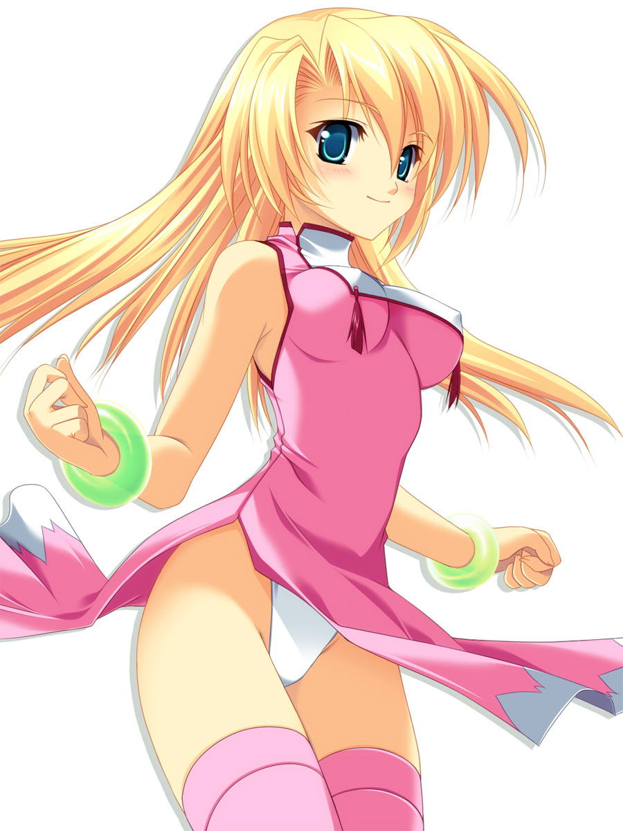 1girlbare shouldersblonde hairblue eyesblushbraceletbreastschina dresschinese clothescovered erect nipplesdressfemale focusimpossible clothesimpossible shirtjewelrylong hairmedium breastspantiespantyshotpelvic curtainpink dresspink skirtpink thighhighsshirtskirtsleevelesssleeveless dresssmilesolostandingthighhighsunderwearwhite pantieswindwind lift