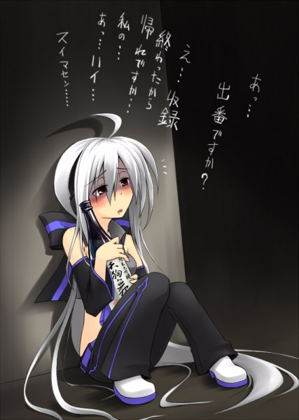 1girlahogealcoholbottledetached sleevesdrunkfemale focusfull bodylong hairponytailred eyessakesittingsolovery long hair