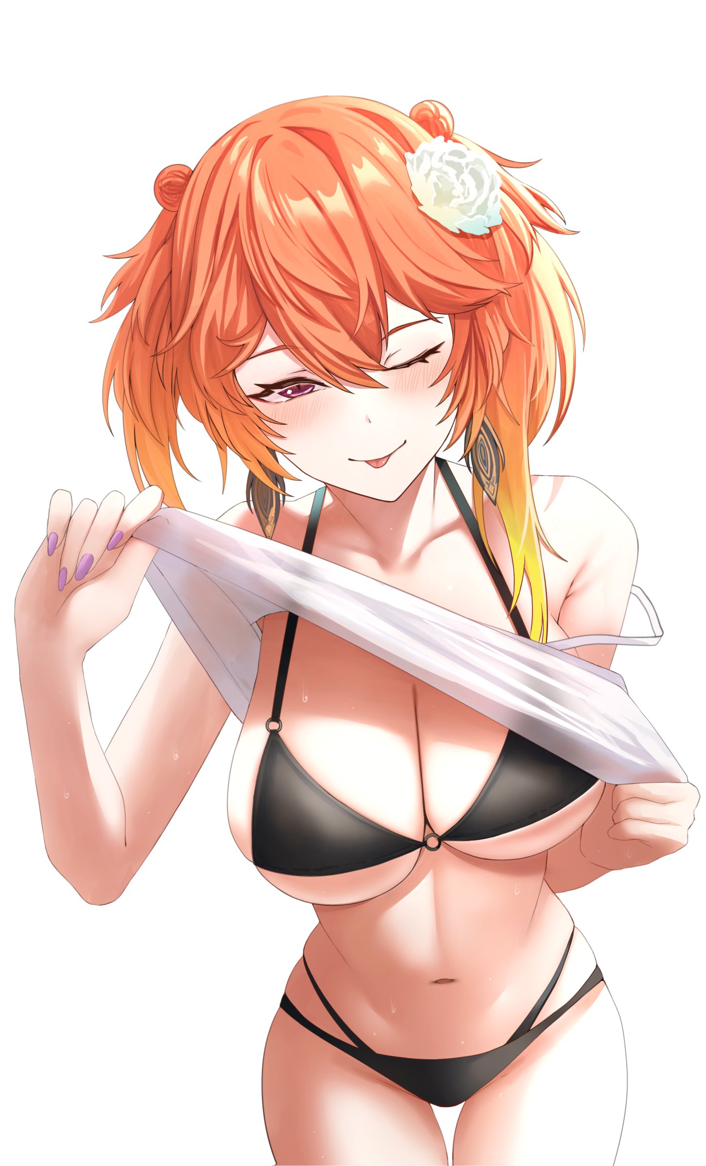 gk, bad id, bad pixiv id, 1girl, black eyes, black hair, breasts, female focus, large breasts, long hair, lying, nipples, nude, on side, solo, twintails