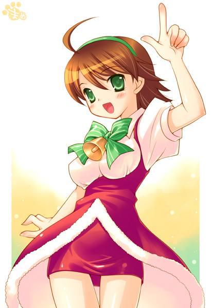 00s1girlahogebellbrown hairchristmasfemale focusgreen eyespencil skirtsanta costumeshort hairskirtsolo
