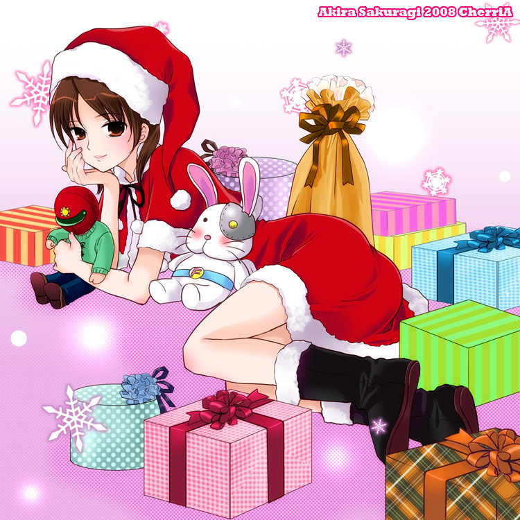 00s1girlassbootsboxchristmasfemale focusfrom behindfur trimgiftgift boxknee bootslooking at viewerlyingon sidesacksanta costumesolo