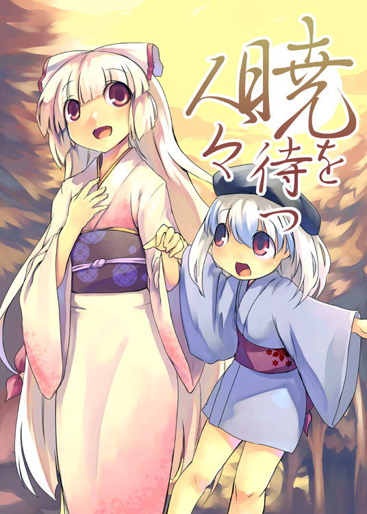 kousaka tamaki, takase mizuki, comic party, to heart (series), to heart 2, 00s, 2girls, blush, bow, breast press, breasts, clothes lift, large breasts, long sleeves, looking at viewer, multiple girls, no bra, red hair, school uniform, serafuku, shirt lift, symmetrical docking, yellow bow, yuri