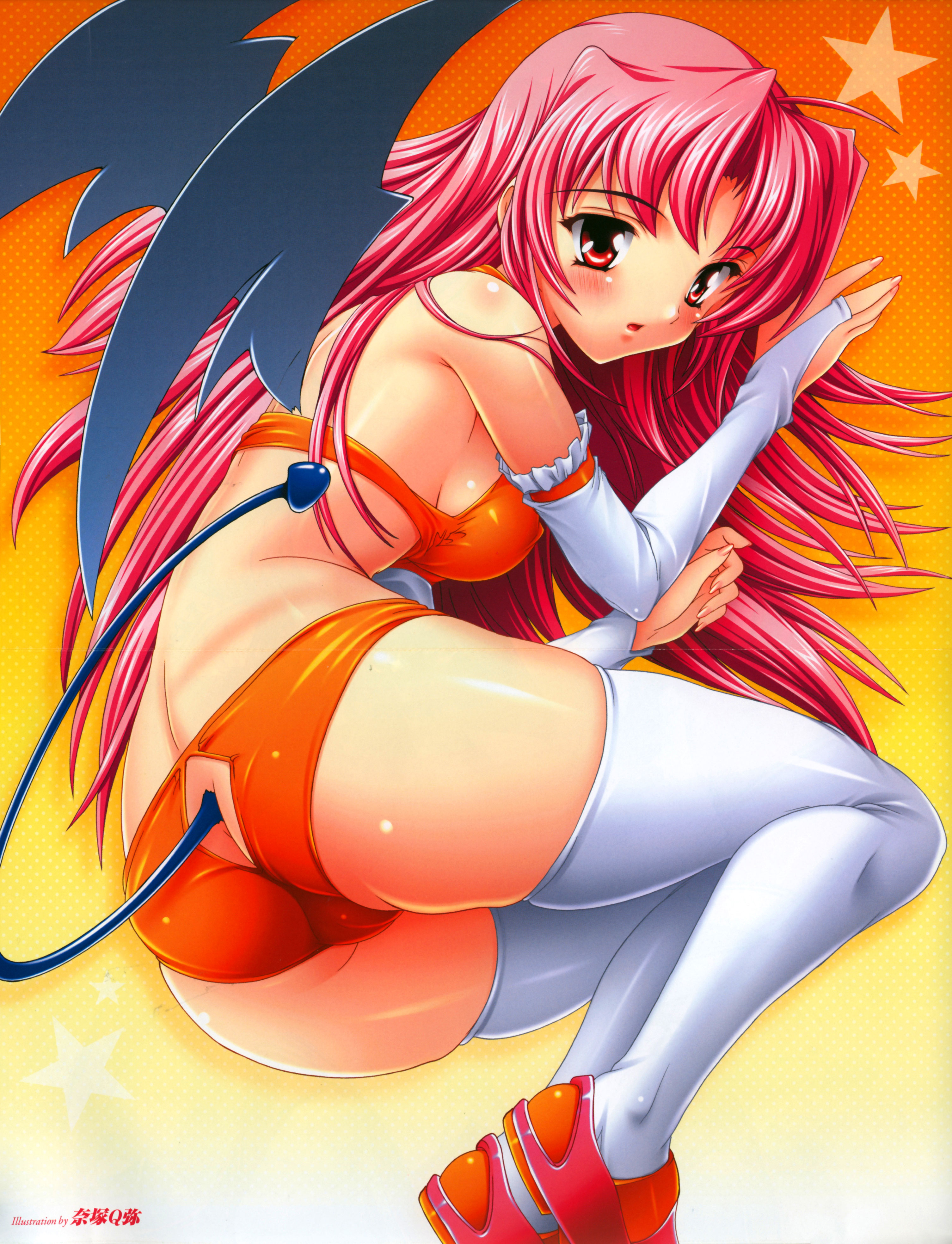 1girlassblushbreastsbridal gauntletscameltoeclothing cutoutdemon girlelbow glovesfemale focusfetal positionglovesgradient backgroundlarge breastslatexlong hairpink hairred eyesshoessideboobsolostar (symbol)tailtail through clothesthighhighstrefoilwings