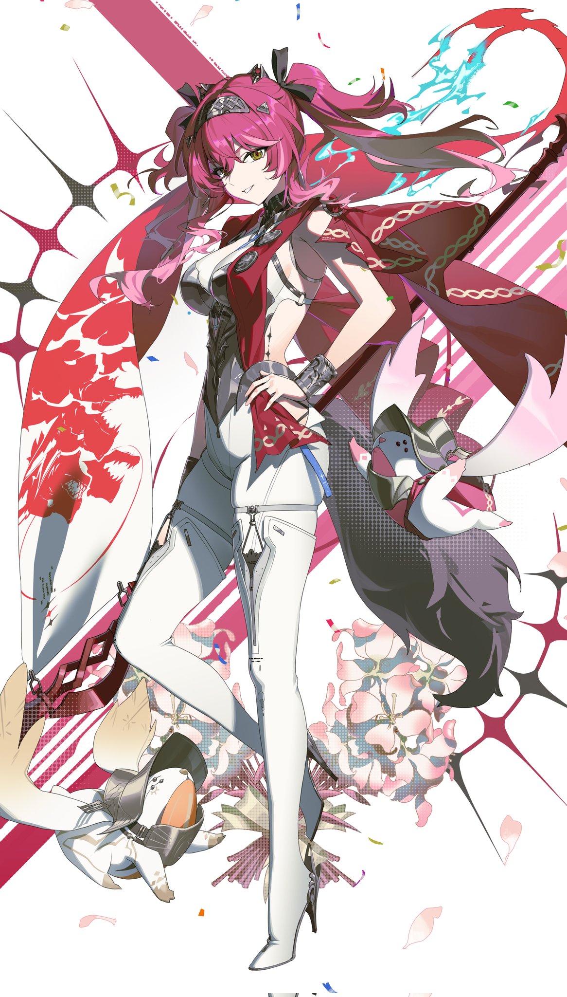 carnelian, kuraki suzuna, kao no nai tsuki, highres, 00s, 1girl, bow, breasts, brown eyes, camellia, female focus, flower, hair bow, hair intakes, hair ribbon, head tilt, long hair, long sleeves, purple hair, purple ribbon, ribbon, smile, solo, turtleneck, very long hair
