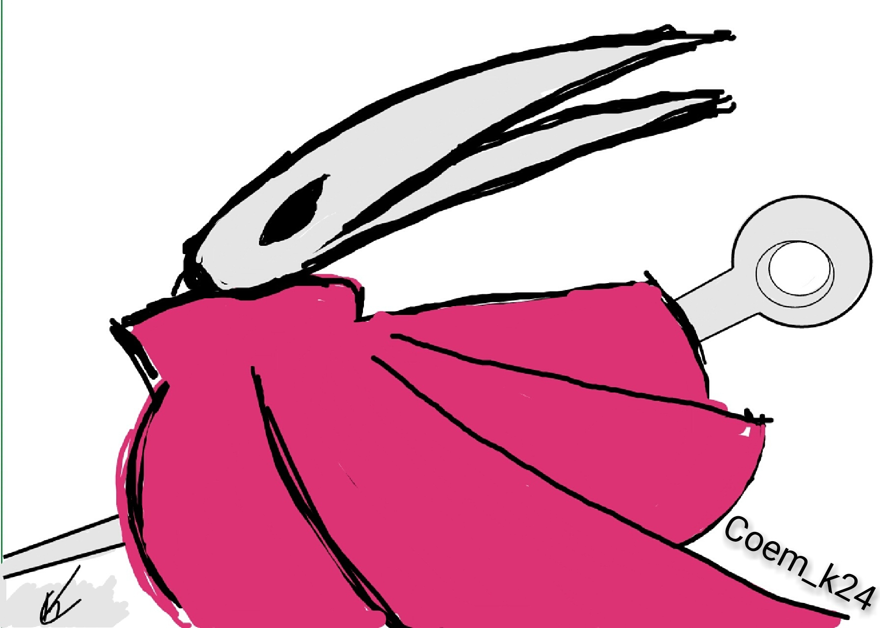 capecoem k24creative signaturefloating capefrom sideholdingholding needleholding weaponhornsneedlered capesignaturesimple backgroundtwitter usernamevery long capeweaponwhite background