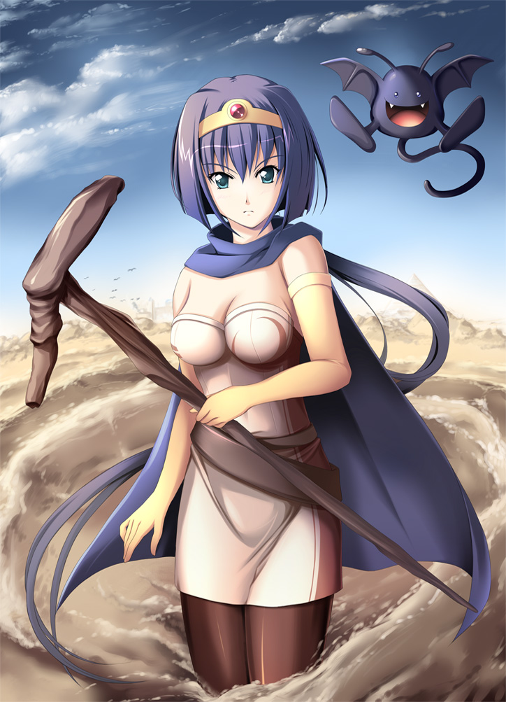 shou (akuma no ryouiki), electra (nadia), fushigi no umi no nadia, lowres, 1990s (style), 1girl, blonde hair, blue eyes, bodysuit, border, breasts, cloud, contrapposto, day, female focus, lipstick, looking at viewer, makeup, mecha pilot suit, medium breasts, oekaki, outside border, pixel art, plugsuit (evangelion), retro artstyle, short hair, sky, solo, white border