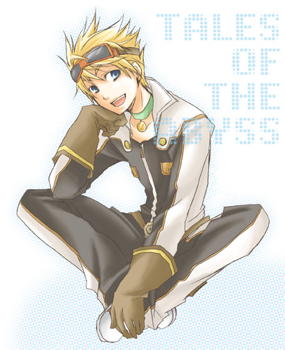 00s1boyblonde hairblue eyeschokercopyright nameglovesgogglesmale focusofficial alternate costumesittingsmilesolowhite background
