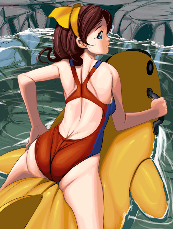 assbackblue eyesbrown haircompetition swimsuitcowboy shothairbandlooking backone-piece swimsuitshort hairswimsuitwater