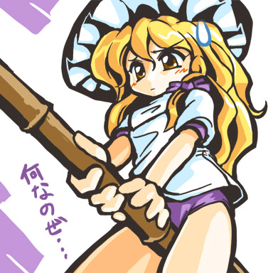 haruyama kazunori, miyako (hidamari sketch), hidamari sketch, 00s, 1girl, blonde hair, breasts, female focus, long hair, panties, pantyshot, school uniform, sitting, socks, solo, spread legs, underwear, white panties, yamabuki high school uniform, yellow eyes
