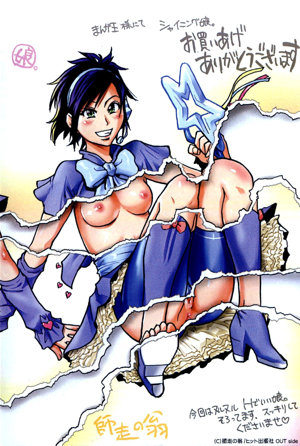 1girlanusassblack hairblue hairblushbreastsgreen eyesgrinhairbandheadbandheadphoneskneehighsnipplespage tearpartially visible anuspartially visible vulvapussyrevealing layershort hairsmilesockssolo focusuncensoredupskirt