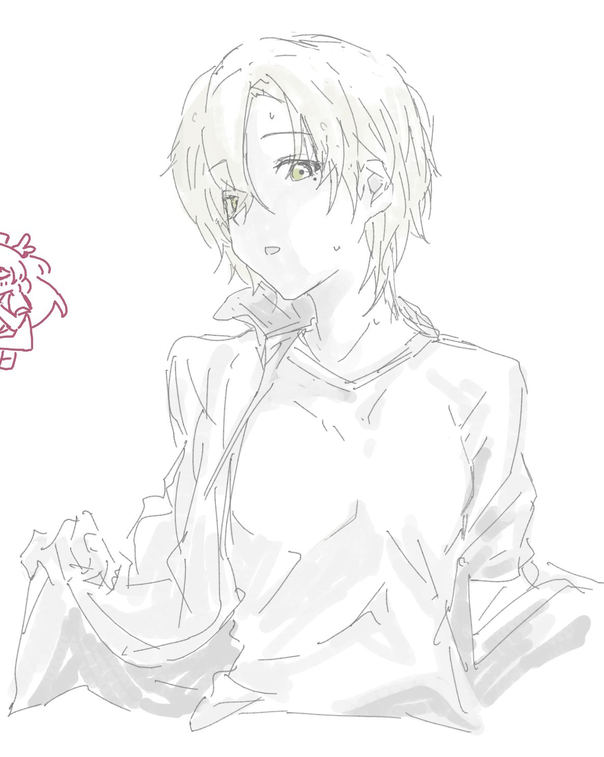 1girlbreastsbrown eyesbrown hairgrey jackethair between eyesjacketlong hair between eyeslooking at viewermedium breastsmolemole under eyeopen mouthshirtshort hairsimple backgroundsolosweatupper bodywhite backgroundwhite shirt