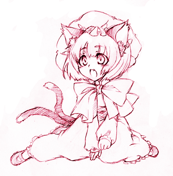 lpeg, dolfini (pangya), kooh (pangya), papel (pangya), pangya, eyebrows, 1girl, :3, bare shoulders, black hair, black panties, blush, collarbone, fangs, female focus, long hair, long sleeves, looking at viewer, off shoulder, on ground, open mouth, outdoors, panties, pantyshot, red eyes, ribbed sweater, shoes, sitting, snow, snowing, solo, sweater, thighhighs, tree, twintails, underwear, wariza, white shoes, white thighhighs