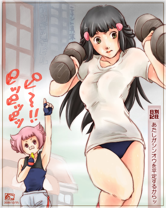 00s2girlsarmpitsblack hairburumagym leaderleg uplong hairlooking at viewermultiple girlspantspink hairshirtshort hairsleevelesssleeveless shirtsportswearstandingstanding on one legtank topvery long hair
