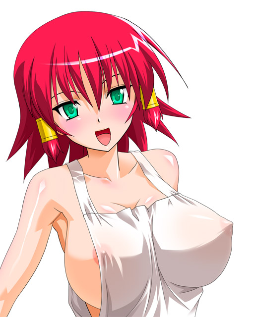 murata mine, oono kanako, ritsuko kubel kettenkrad, genshiken, kujibiki unbalance, 1girl, black eyes, black hair, blush, breasts, breasts apart, censored, convenient censoring, cosplay, detached collar, embarrassed, emblem, female focus, groin, hair between eyes, hair censor, hair over breasts, head tilt, helmet, large breasts, long hair, looking at viewer, mole, mole under eye, mole under mouth, navel, neck ribbon, nose blush, nude, one eye closed, parted lips, ribbon, ritsuko kubel kettenkrad (cosplay), sidelocks, simple background, sitting, solo, very long hair, white background, yokozuwari