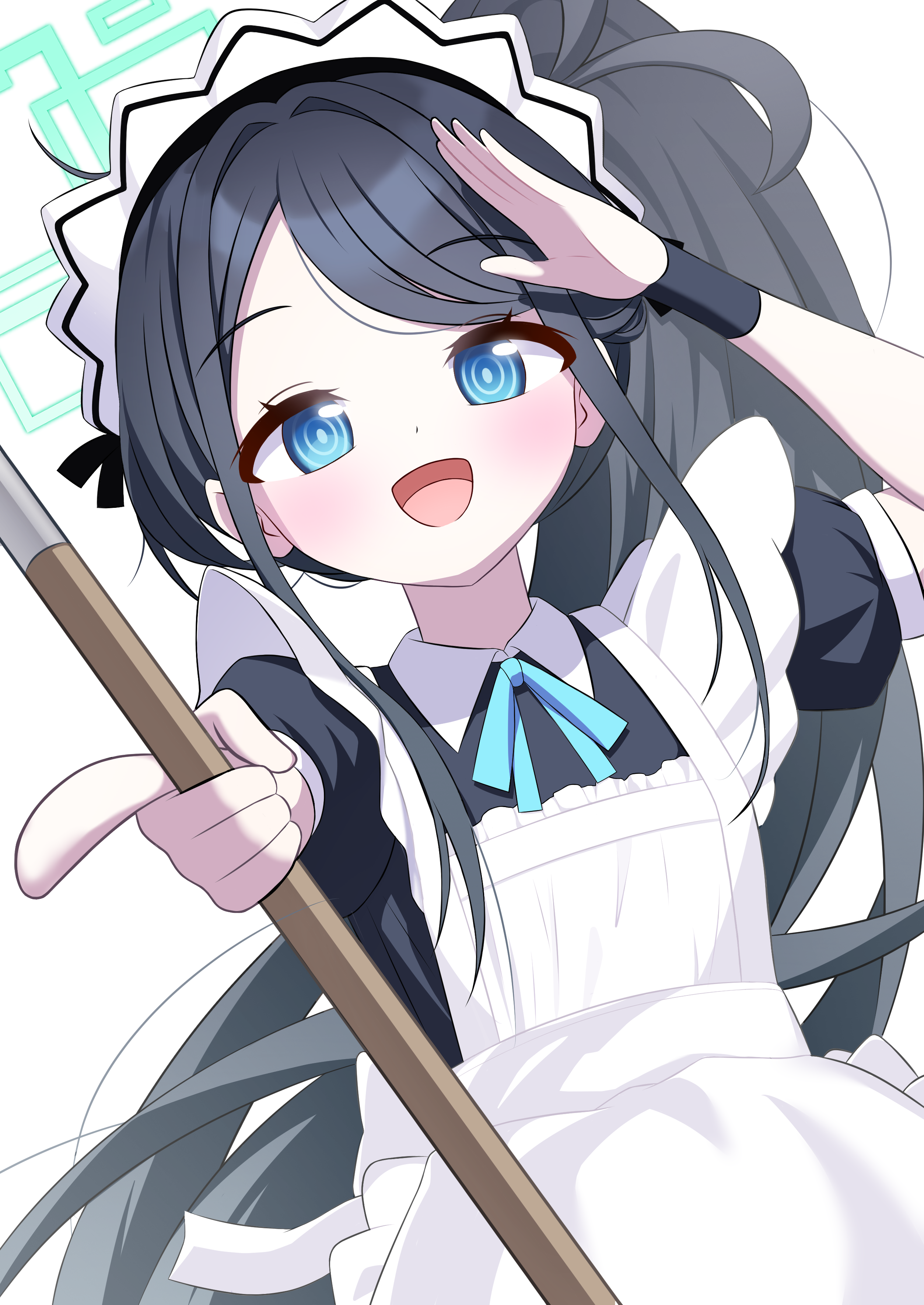 :d1girlapronaqua haloaqua ribbonarm upblack dressblack hairblack wrist cuffsblue eyesblushbright pupilscollared dresscontrast collardot nosedressfrilled apronfrillshalohinatsuki 83long hairlong sidelockslooking at viewermaidmaid apronmaid daymaid headdressneck ribbonofficial alternate costumeofficial alternate hairstyleopen mouthoutstretched armparted bangspointingpointing at viewerponytailpuffy short sleevespuffy sleevesrectangular haloribbonringed eyessaluteshort sleevessidelockssimple backgroundsmilesoloupper bodyvery long hairwhite apronwhite backgroundwhite headdresswrist cuffs