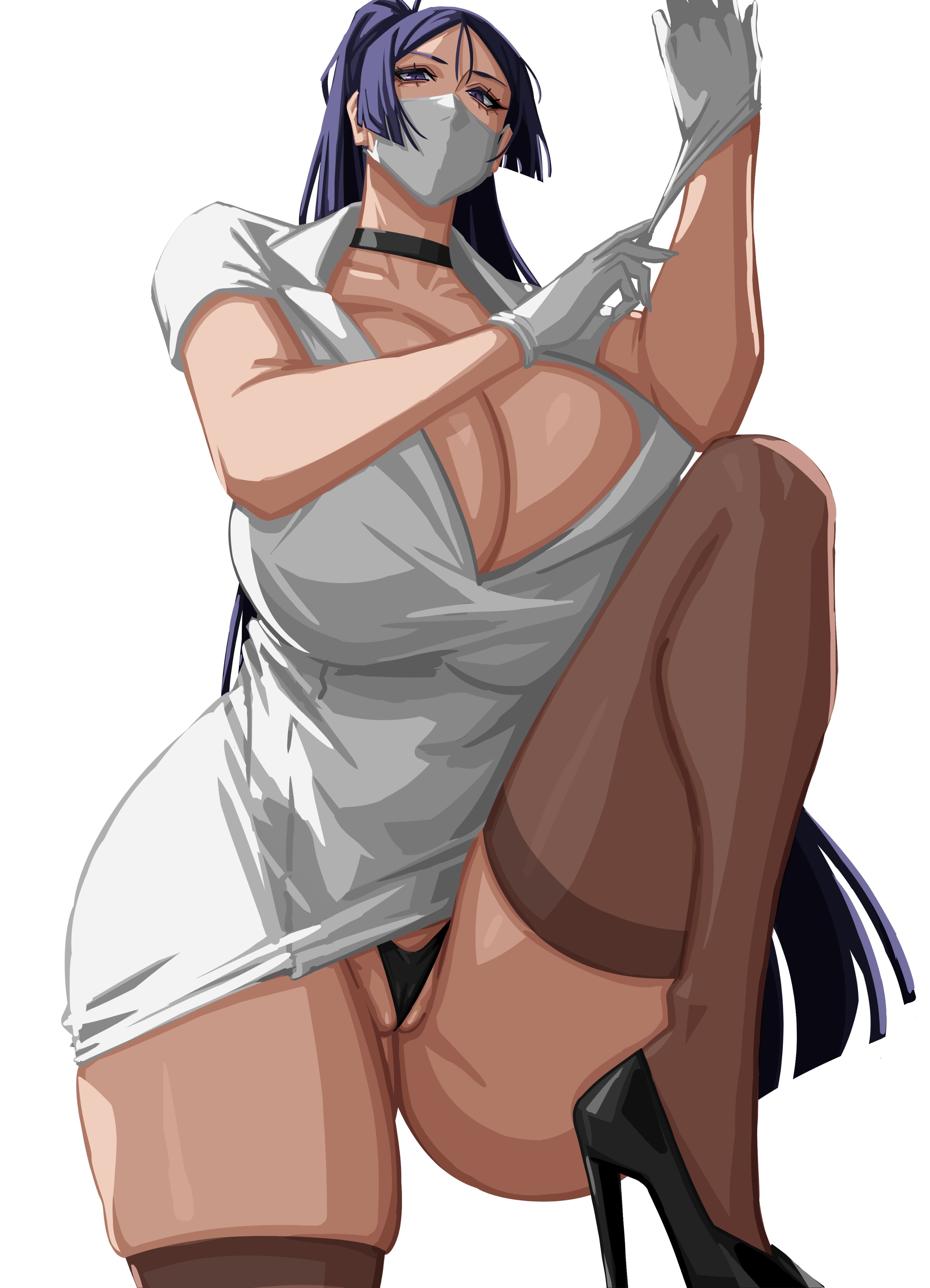 ldl, petra johanna lagerkvist, aq interactive, arcana heart, arcana heart 2, atlus, examu, 1girl, ahoge, blush, breasts, brown hair, cleavage, dress, drill hair, dual wielding, earrings, elbow gloves, female focus, gloves, gun, hands on own hips, holding, jewelry, large breasts, long hair, necklace, purple eyes, solo, thighhighs, trigger discipline, weapon