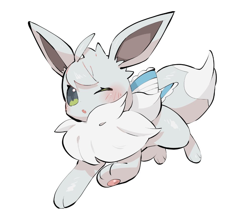 :oalternate coloranimal focusanimal handsblushbowbowtiefangfluffyfull bodygen 1 pokemongreen eyesgrey furlooking at viewerneck furno humansone eye closedopen mouthpawpadspokemon (creature)pokemon focusshiny pokemonsimple backgroundskin fangsolostandingtwo-tone furwhite backgroundwhite bowwhite bowtiewhite fur