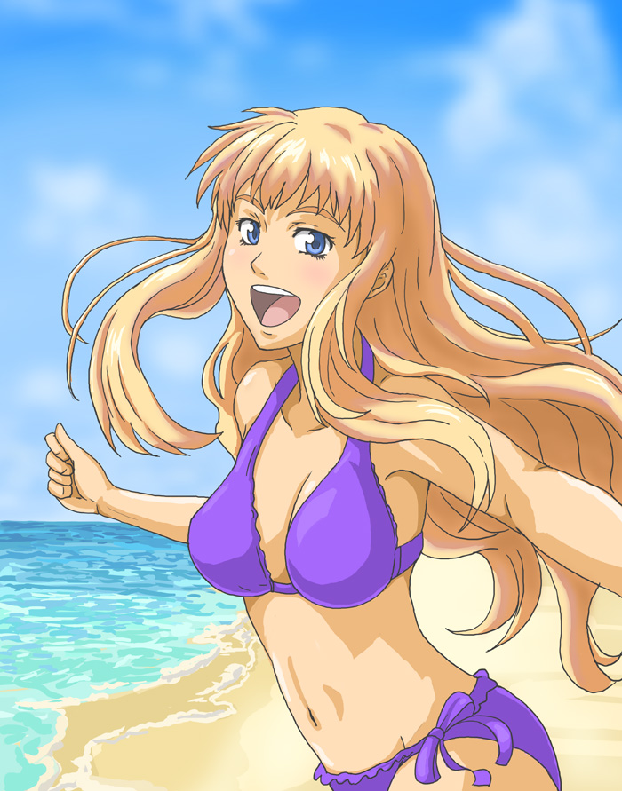 00s1girlarmpitsbeachbikiniblue eyescollarbonedayfemale focuslong hairlooking at vieweroutdoorspurple bikinisandsoloswimsuitvery long hairwaterwavy hair