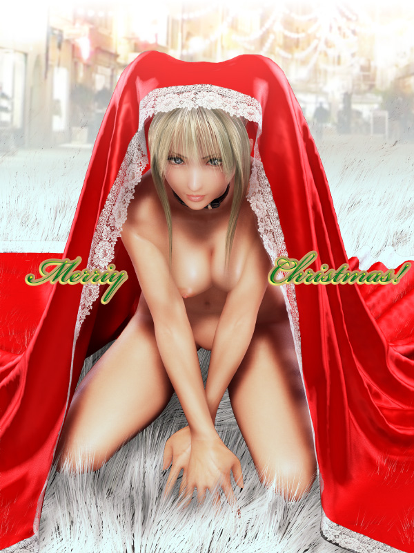 1girl3dblonde hairblue eyesbreastschokerchristmasfemale focuskneelinglacelooking at viewernipplesno pussynudesolo