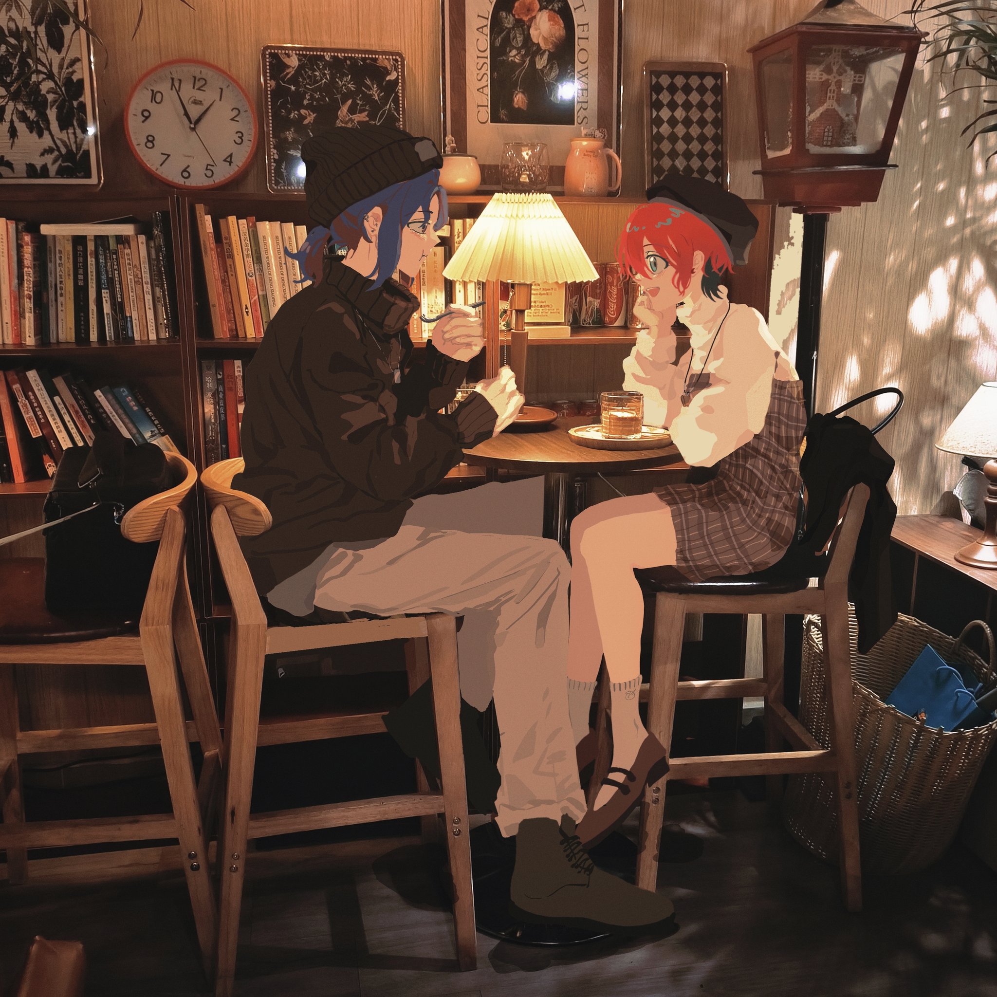 cyberdoll sara, hand maid may, 00s, 2boys, 6+girls, blue hair, bowl, chopsticks, high heels, multiple boys, multiple girls, pointy ears, shoes, tan, thighhighs, yellow eyes