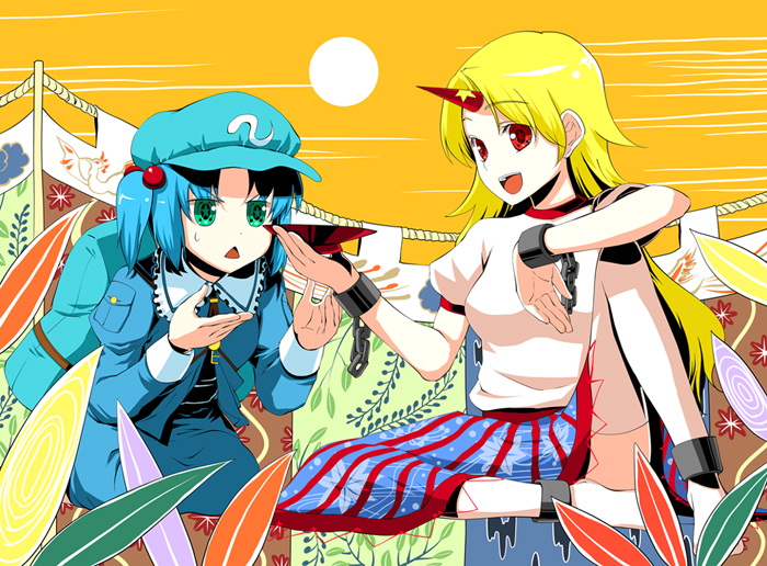 1boy2girlsbagblonde hairblue haircupfemale focushair bobbleshair ornamenthathornslong hairmultiple girlssakazukishort hairsingle hornsymbol-shaped pupilstriangle mouthtwo side up