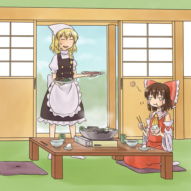 liiix46, fukagawa mahiro, sugimoto chisato, baby walkure, commentary, hashtag-only commentary, highres, translation request, 2girls, black eyes, blonde hair, blood, blood on face, holding hands, long hair, long sleeves, multiple girls, poncho, short hair, simple background, white background, yuri